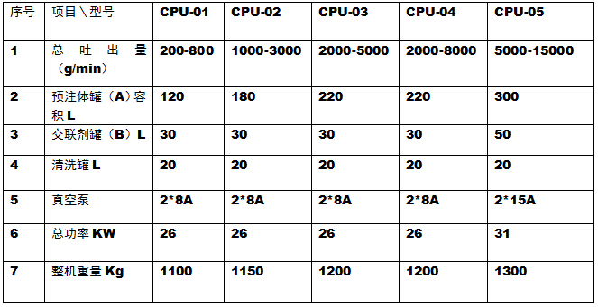 四.CPU--02型高溫彈性體澆注機主要參數(shù)